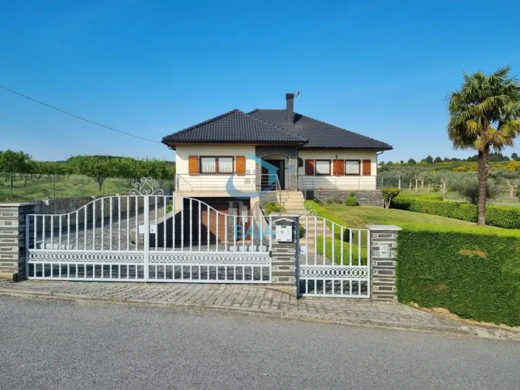 Moradia V4 com garagem, jardim e anexos para arrumação. O rés-do-chão é constituído por sala de estar e jantar com lareira, cozinha com lareira, (...)
